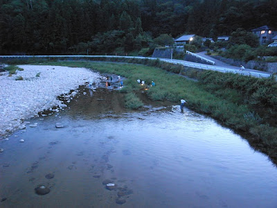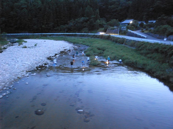 今回は、たてあみといって川の幅いっぱいに網を張って、そこに鮎を追い込む方式。