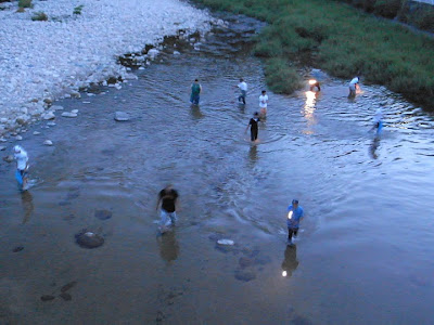 今回は、たてあみといって川の幅いっぱいに網を張って、そこに鮎を追い込む方式。
